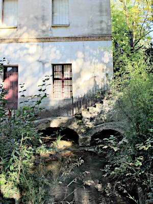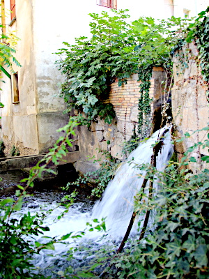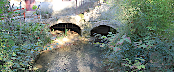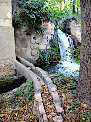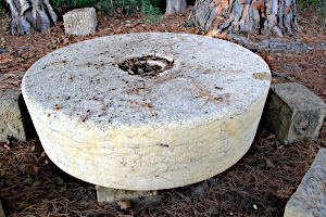 De waterwerken doet denken aan een graanmolen, maar voor het gebouw ligt een rolsteen, die nu dienst doet als tafel (8), en dat suggereert een oliemolen.