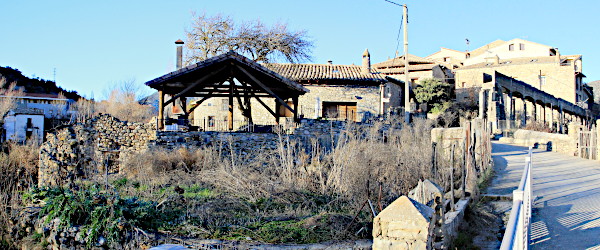 Calle del Molino. Stay on this lower street for about 100 m where you will find a narrow path (between the balustrade and the facade of a house) leading down to the site of the mill. Walk about 50 m further on the street and you will reach the aqueduct and recognize the view of (1).