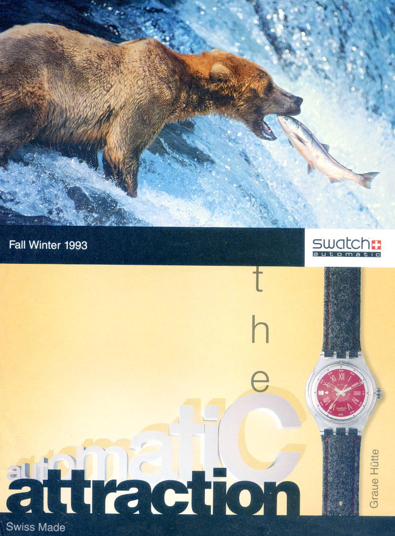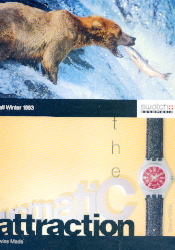 The automatic attraction.The statement may be very true against the watch, but I can only guess about the relevance of the image. Is the fish attracted by the bear ? Surely not true. Is the bear attracted to the fish ? In a sense probably yes. But then a honeybee with a flower, or a cat with a mouse would perform equally well. Or should we read it as a double story, the upper panel being a fatal and the lower half an automatic attraction. Does that makes sense ? This doesn't clear the attraction problem, however.