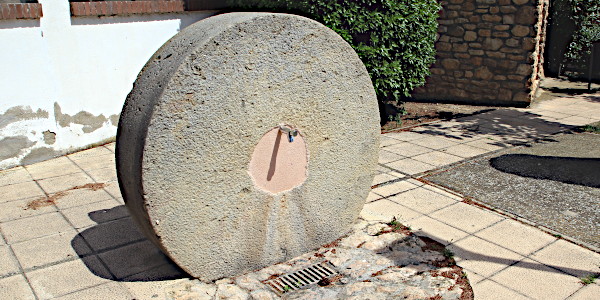 (2) Oude rollersteen (∅ 160 cm) van de oliemolen die nu verdwenen is.